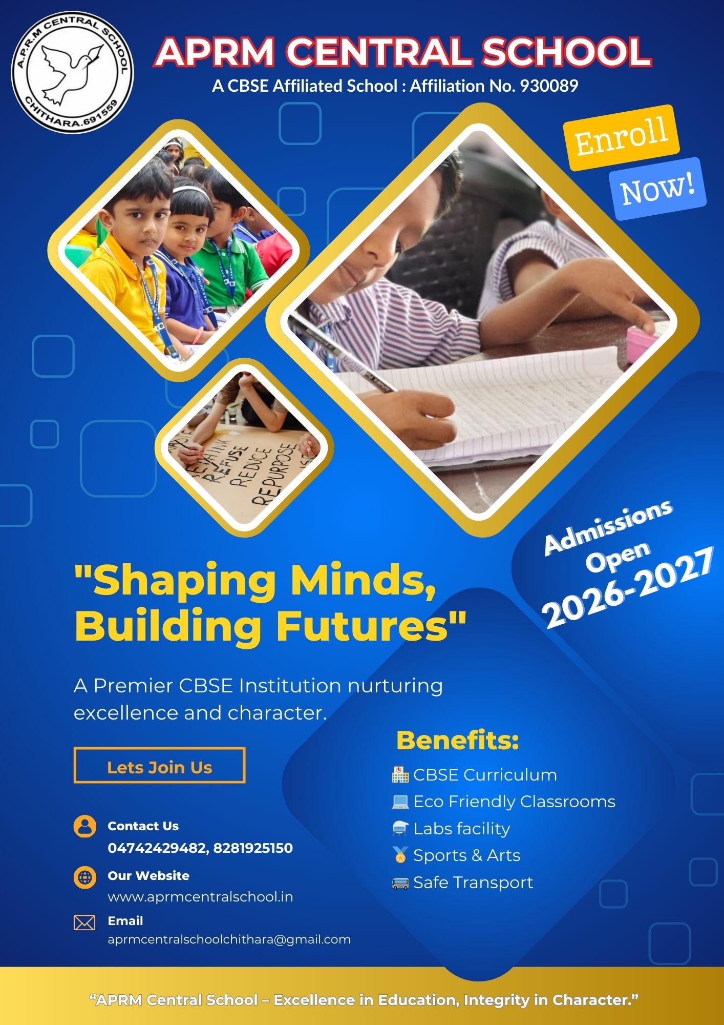Welcome to APRM Central School. Join with us to build your child’s future. We assure you to give our best for your ward’s satisficed result.